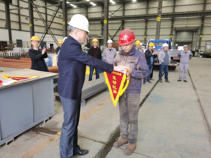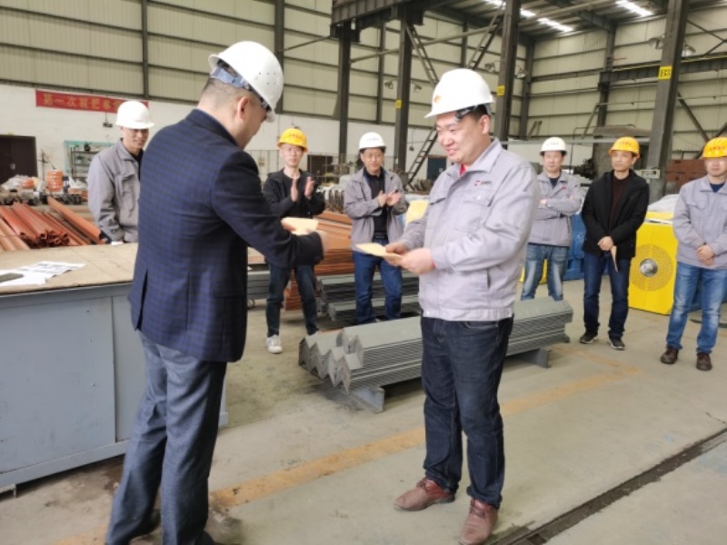 2021年4月2日中午12:15分,天奇藍(lán)天公司高管及先進(jìn)班組和節(jié)約獎(jiǎng)獲得者近30人在三號(hào)廠房“橫梁班”現(xiàn)場(chǎng)召開(kāi)了一場(chǎng)別開(kāi)生面的表彰大會(huì)。 首先,由公司總經(jīng)理章愛(ài)前對(duì)三月份在“先進(jìn)班組”考核中優(yōu)勝的“許世艷班組”和“谷昆明班組”授予了先進(jìn)班組流動(dòng)紅旗和獎(jiǎng)金,并對(duì)2020年受股份公司表彰的姚中華、翟宏維、滕軍波、李文四名標(biāo)兵頒發(fā)榮譽(yù)證書(shū)和獎(jiǎng)金。章總還對(duì)在三月份節(jié)約材料專項(xiàng)工作中表現(xiàn)突出的周勇、李磊等六名同志頒發(fā)獎(jiǎng)金。 我公司在今年伊始,面對(duì)原輔材料漲價(jià)和用工緊張的雙重壓力,積極應(yīng)對(duì),著實(shí)圍繞生產(chǎn)成本練習(xí)內(nèi)功,號(hào)召?gòu)V大員工從節(jié)約“一度電”、“一滴水”、“一寸鐵”入手,自覺(jué)參與節(jié)約原材料活動(dòng),并及時(shí)做好該次活動(dòng)的組織和評(píng)選工作。 此次我公司將先進(jìn)表彰會(huì)的會(huì)場(chǎng)移到生產(chǎn)車(chē)間一線,就是要號(hào)召更多的員工投入到生產(chǎn)勞動(dòng)競(jìng)賽和節(jié)約原材料這兩項(xiàng)活動(dòng)當(dāng)中去,積極弘揚(yáng)主人翁精神和愛(ài)崗敬業(yè)的主旋律,為全面完成今年的生產(chǎn)經(jīng)營(yíng)指標(biāo)而努力工作。 |