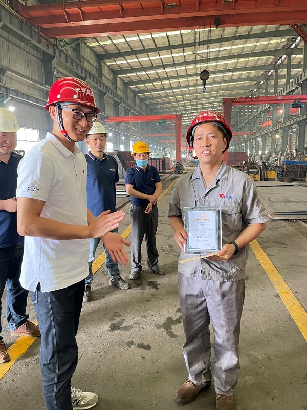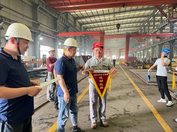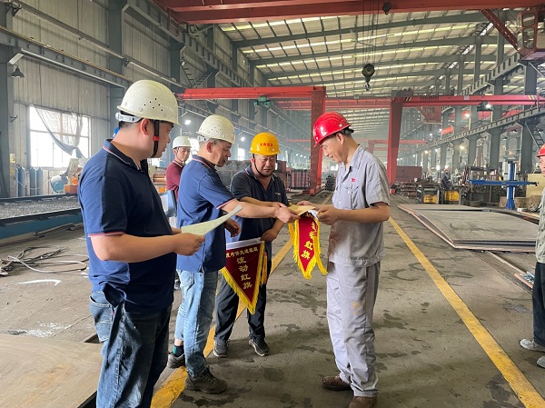 首先,由公司總經(jīng)理助理施樂(lè)勤對(duì)五月份在“先進(jìn)班組”考核中優(yōu)勝的“下料車間曹軍班組”和“裝配朱長(zhǎng)生班組”授予了先進(jìn)班組流動(dòng)紅旗和獎(jiǎng)金,并對(duì)2021年受股份公司表彰的“優(yōu)秀員工”阮德明、朱風(fēng)巧及“崗位標(biāo)兵”谷昆明、姚鎮(zhèn)四名同志頒發(fā)榮譽(yù)證書(shū)和獎(jiǎng)金。